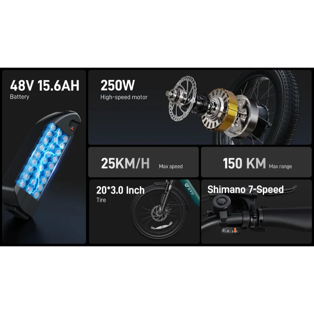DYU C9 Vélo Electrique Pliable Longue Autonomie – Specifications: