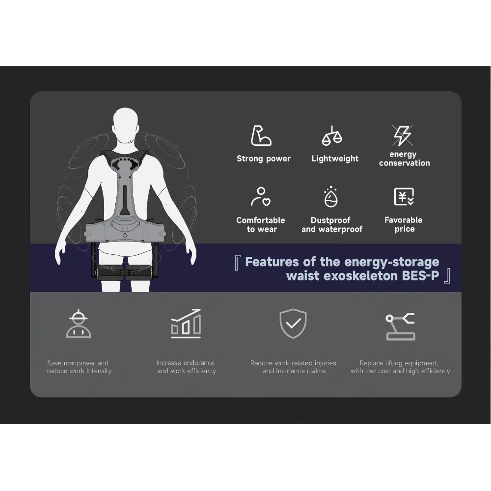 - Type : Exosquelette motorisé de soutien des hanches et des lombaires pour le levage industriel