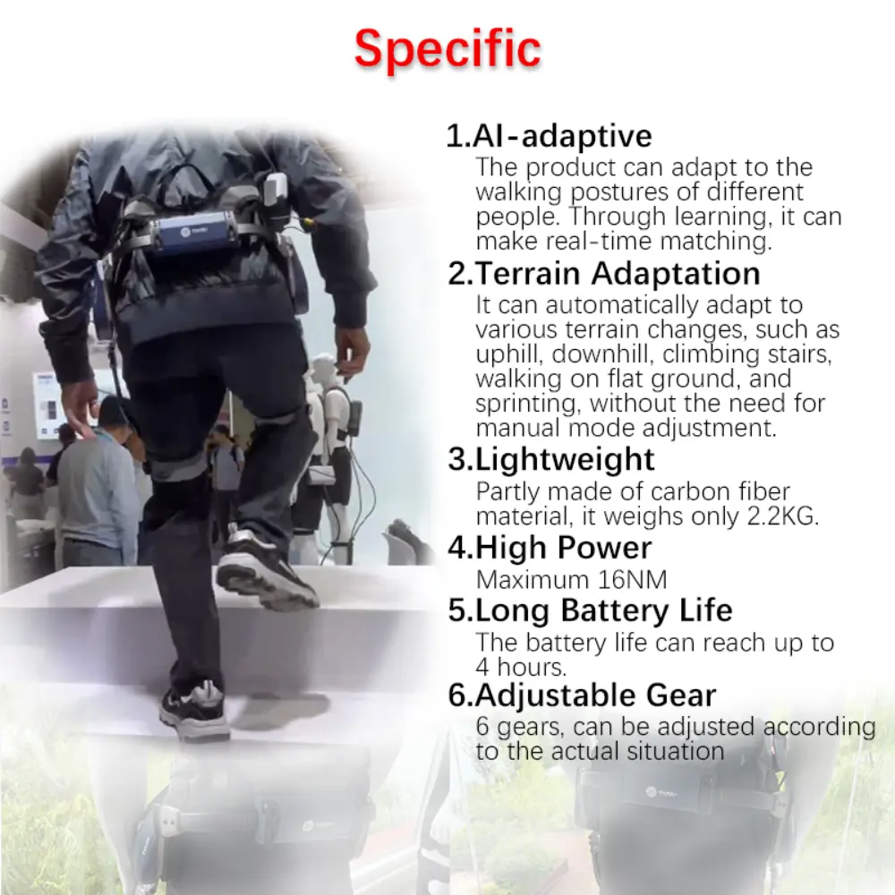 Exosquelette Robotique en Fibre de Carbone Alimenté par l’IA – Specifications: