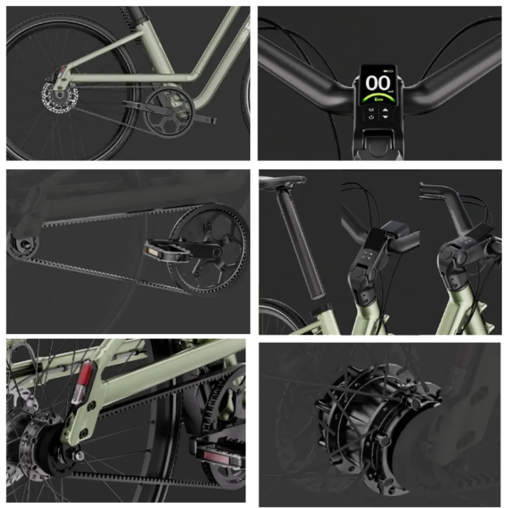 Le Fiido C700 Vélo Electrique de Ville est un vélo urbain élégant, conçu pour allier style, confort et technologie de pointe. Avec son cadre léger en alliage d’aluminium de seulement 19,7 kg, il est facile à manœuvrer en ville. Ce vélo est équipé d’une transmission par courroie en carbone, ce qui signifie qu’il n’y a pas de chaînes grasses, aucun entretien et un silence de roulement absolu. Un moteur moyeu arrière de 250 W, associé à un capteur de couple Mivice S200, offre une assistance au pédalage fluide et intuitive qui s’adapte à votre effort, pour une conduite naturelle. Le design d’inspiration rétro du C700 comprend un cadre à enjambement bas dans une finition vert sauge douce, des freins à disque hydrauliques pour une puissance de freinage fiable et des pneus CST 700C×40C qui absorbent les vibrations urbaines. La batterie amovible de 280,8 Wh offre une autonomie de 83 km en mode ECO et est facilement rechargeable. Un écran LCD centré, des clignotants et une étanchéité IP54 complètent ses fonctionnalités pratiques pour les trajets quotidiens. L’élégance sur deux roues, idéale pour les trajets quotidiens ou les balades du week-end.