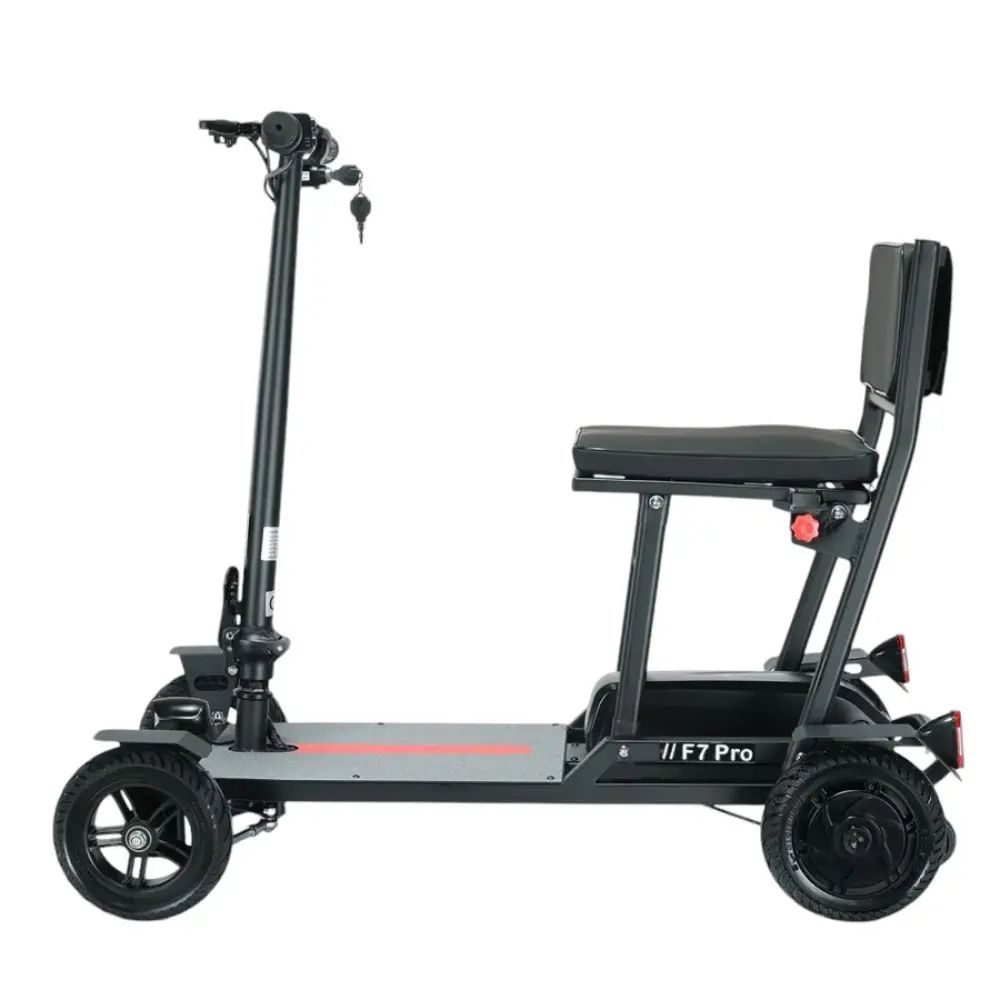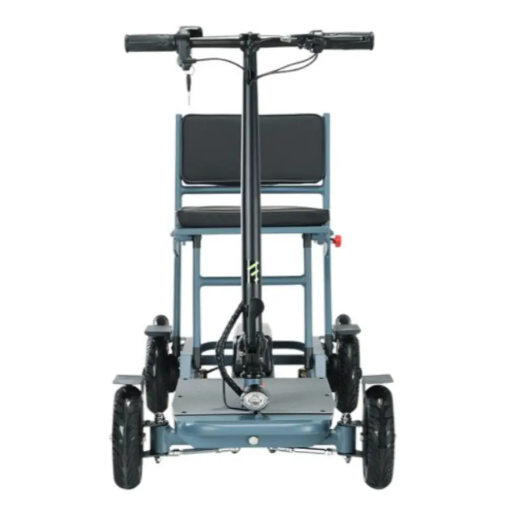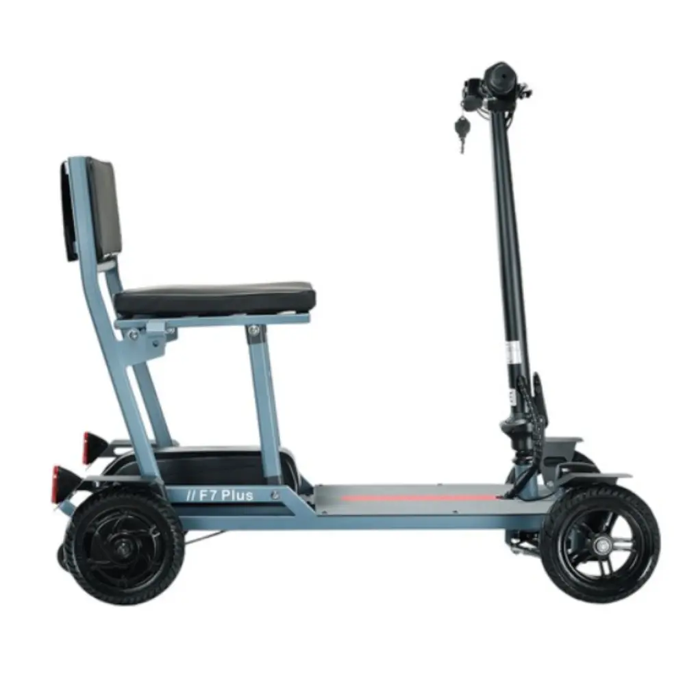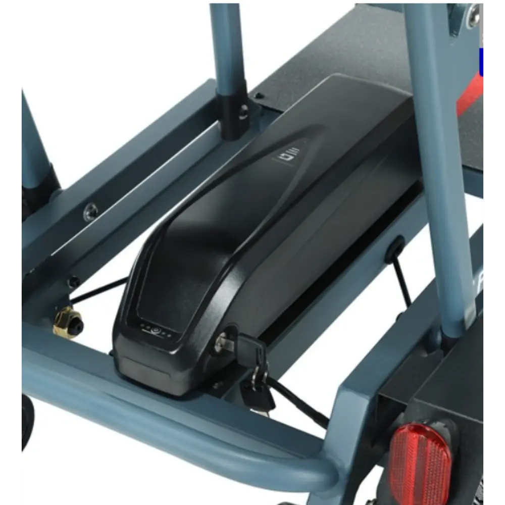 La Freejoyer F7 Plus Trottinette Électrique à Quatre Roues, coloris gris-bleu, est une solution de mobilité soigneusement conçue pour allier confort, stabilité et praticité. Équipée d’un moteur à propulsion arrière de 300 W et d’une batterie 36 V 21 Ah, elle atteint une vitesse de pointe de 15 km/h et une autonomie maximale de 35 km, idéale pour les déplacements urbains courts ou les balades tranquilles. Sa conception à quatre roues assure un équilibre et une sécurité supérieurs, notamment pour les seniors ou les utilisateurs recherchant une stabilité accrue. Les pneus en caoutchouc massif sont durables et increvables, offrant une conduite fluide sur différents terrains. Un siège ergonomique confortable avec un panier de rangement en dessous offre un confort optimal, permettant aux utilisateurs de transporter facilement leurs effets personnels ou leurs courses. Dotée d’un cadre pliable en alliage d’aluminium, la trottinette est facile à ranger ou à transporter dans un coffre de voiture. Ses phares et feux arrière à LED offrent une visibilité optimale, tandis que l’écran LCD informe le conducteur de la vitesse et de l’état de la batterie. Avec une capacité de charge de 100 kg, des roues auxiliaires arrière pour éviter le basculement et plusieurs modes de conduite, le Freejoyer F7 Plus est un choix fiable et élégant pour la mobilité quotidienne.