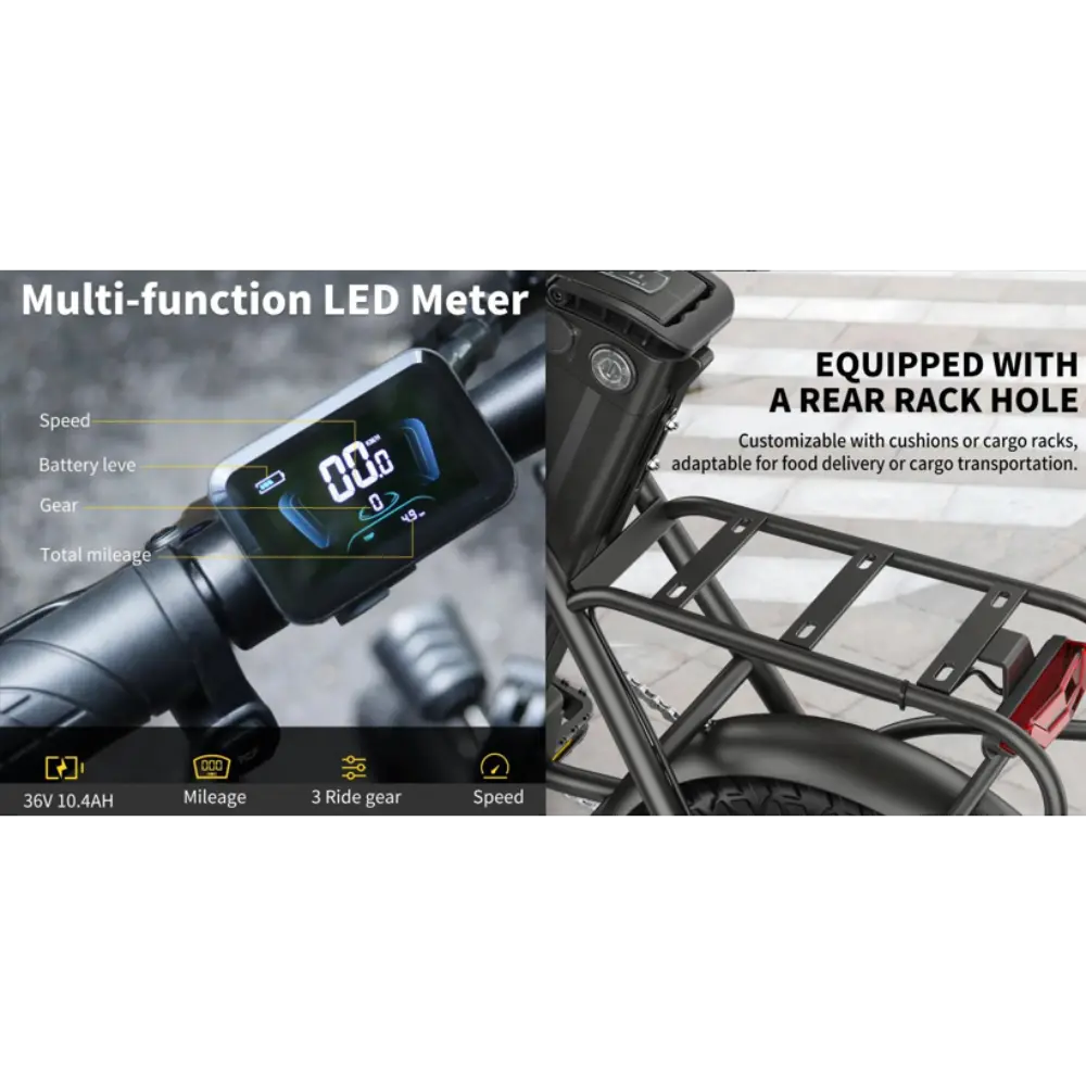 Le Hidoes C5 Vélo Électrique Pliant est conçu pour les cyclistes qui recherchent un équilibre parfait entre portabilité, puissance et praticité au quotidien. Idéal pour les trajets domicile-travail et les aventures à vélo, le C5 allie un cadre pliable compact et un moteur électrique de haute performance de 250 W, ce qui en fait la solution idéale pour se déplacer en ville ou explorer de magnifiques itinéraires le week-end. Sa conception légère et robuste permet de le plier et de le ranger en quelques secondes, que ce soit pour prendre les transports en commun, le ranger dans le coffre de votre voiture ou gagner de la place à la maison. Grâce à son moteur électrique performant, le Hidoes C5 offre une accélération fluide et une assistance fiable en côte, sur les longues distances et pour vos trajets quotidiens. Sa batterie intégrée de 36 V et 10,4 A est conçue pour une autonomie étendue, vous permettant de rouler en toute sérénité sans avoir à la recharger constamment. Avec un freinage réactif, une ergonomie confortable et une maniabilité stable, le C5 offre une expérience de conduite sûre et agréable, aussi bien pour les débutants que pour les cyclistes confirmés. Avec son design élégant, ses commandes intuitives et ses composants nécessitant peu d’entretien, le vélo Hidoes C5 est un choix idéal pour un transport écologique. Que ce soit pour aller au travail, faire des courses ou simplement profiter du grand air, le Hidoes C5 vous offre une solution intelligente, élégante et durable pour vos déplacements quotidiens.