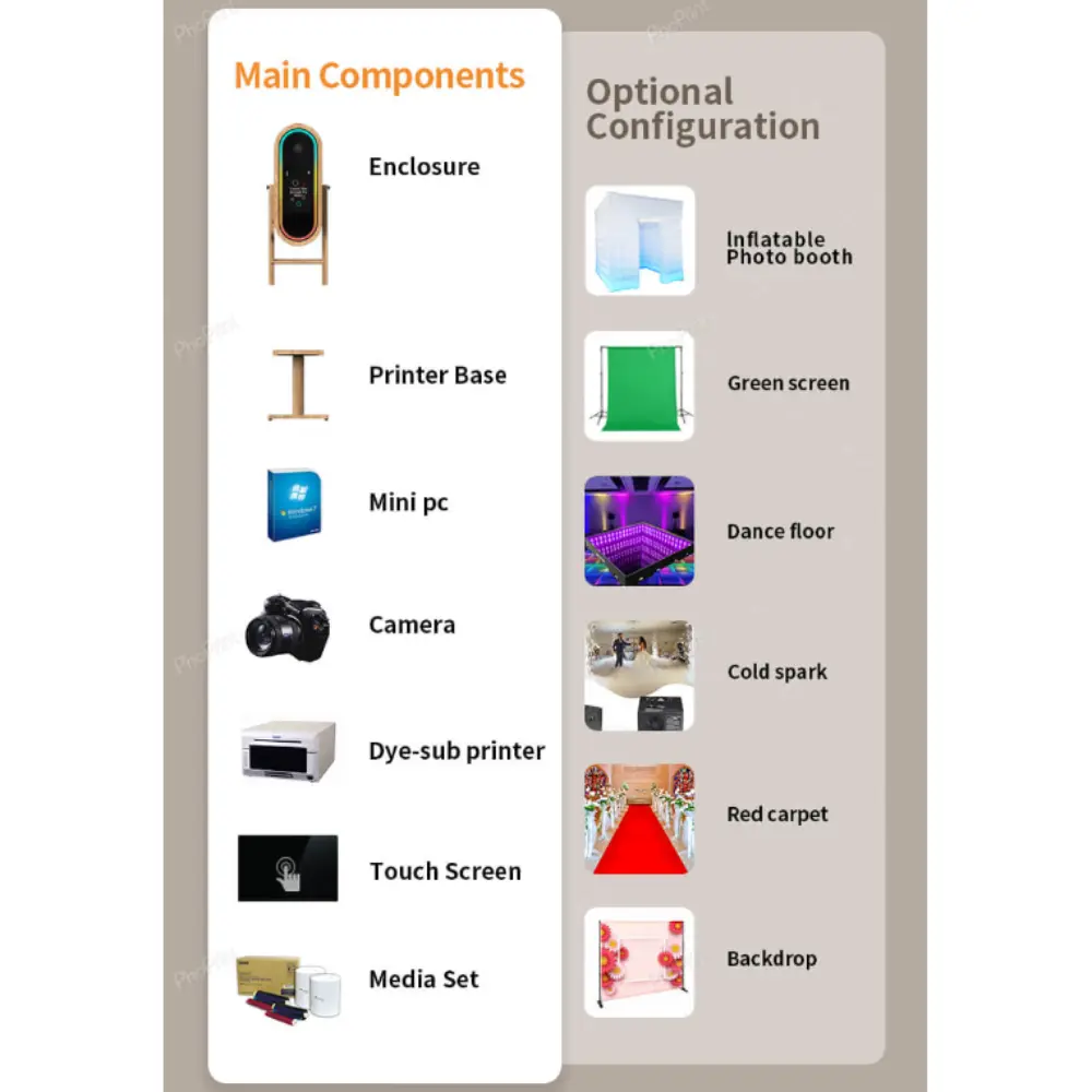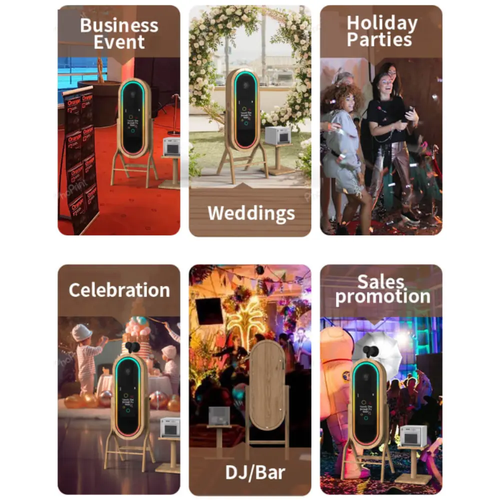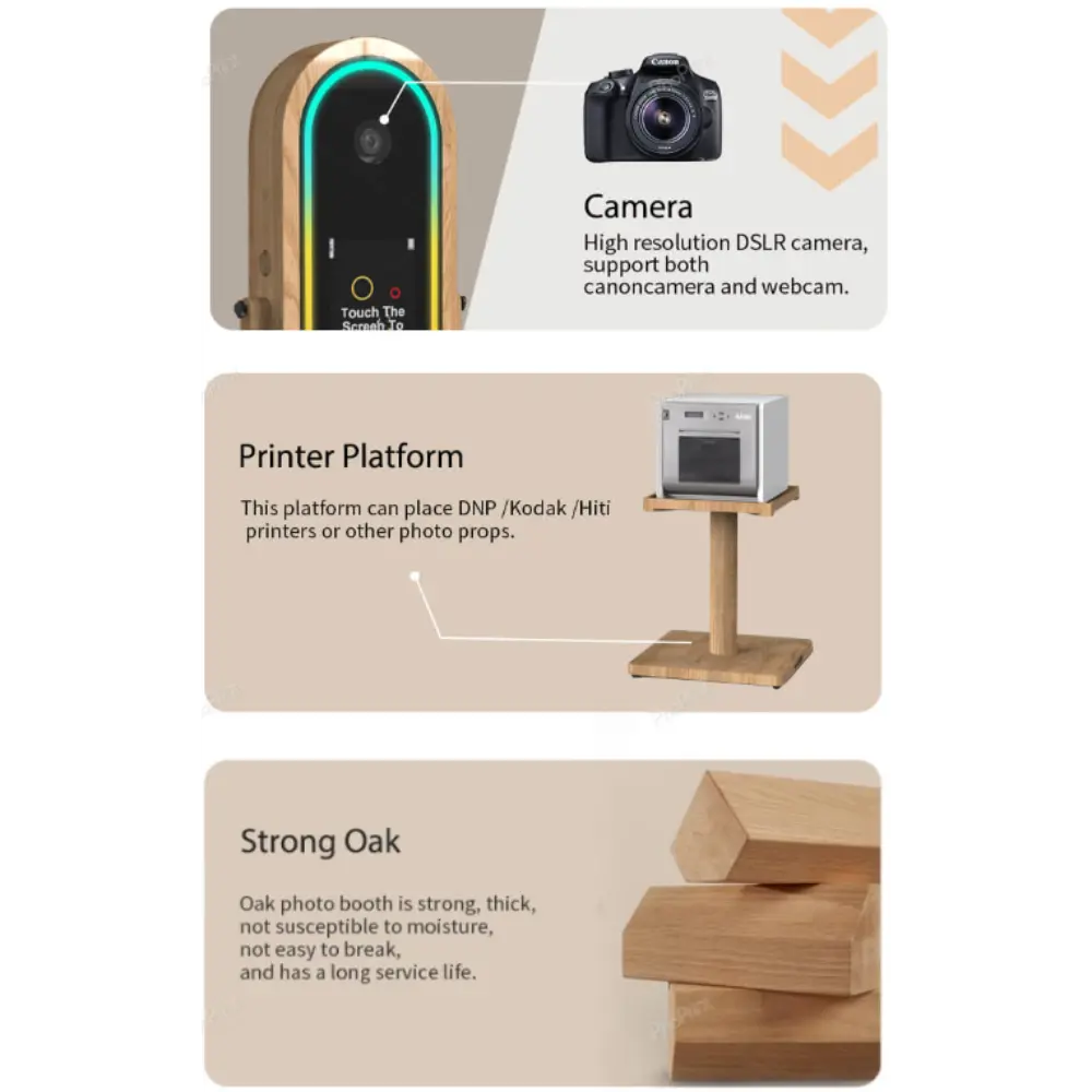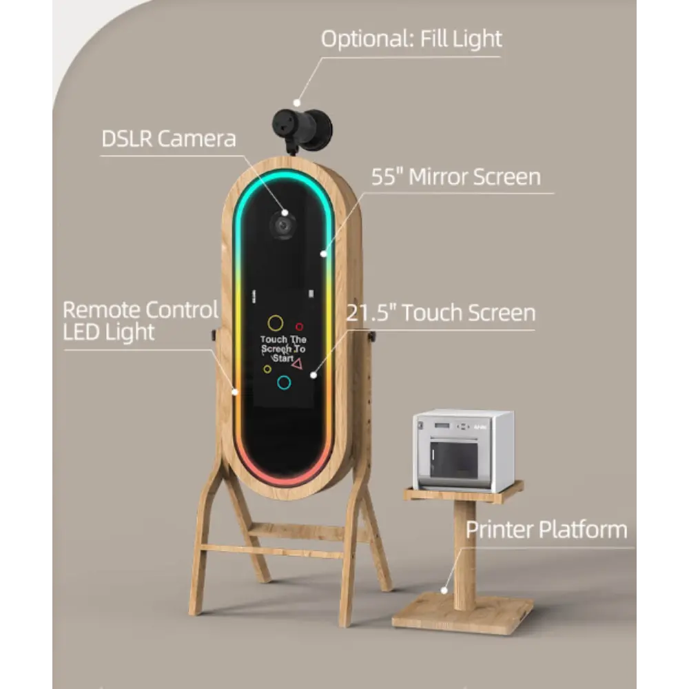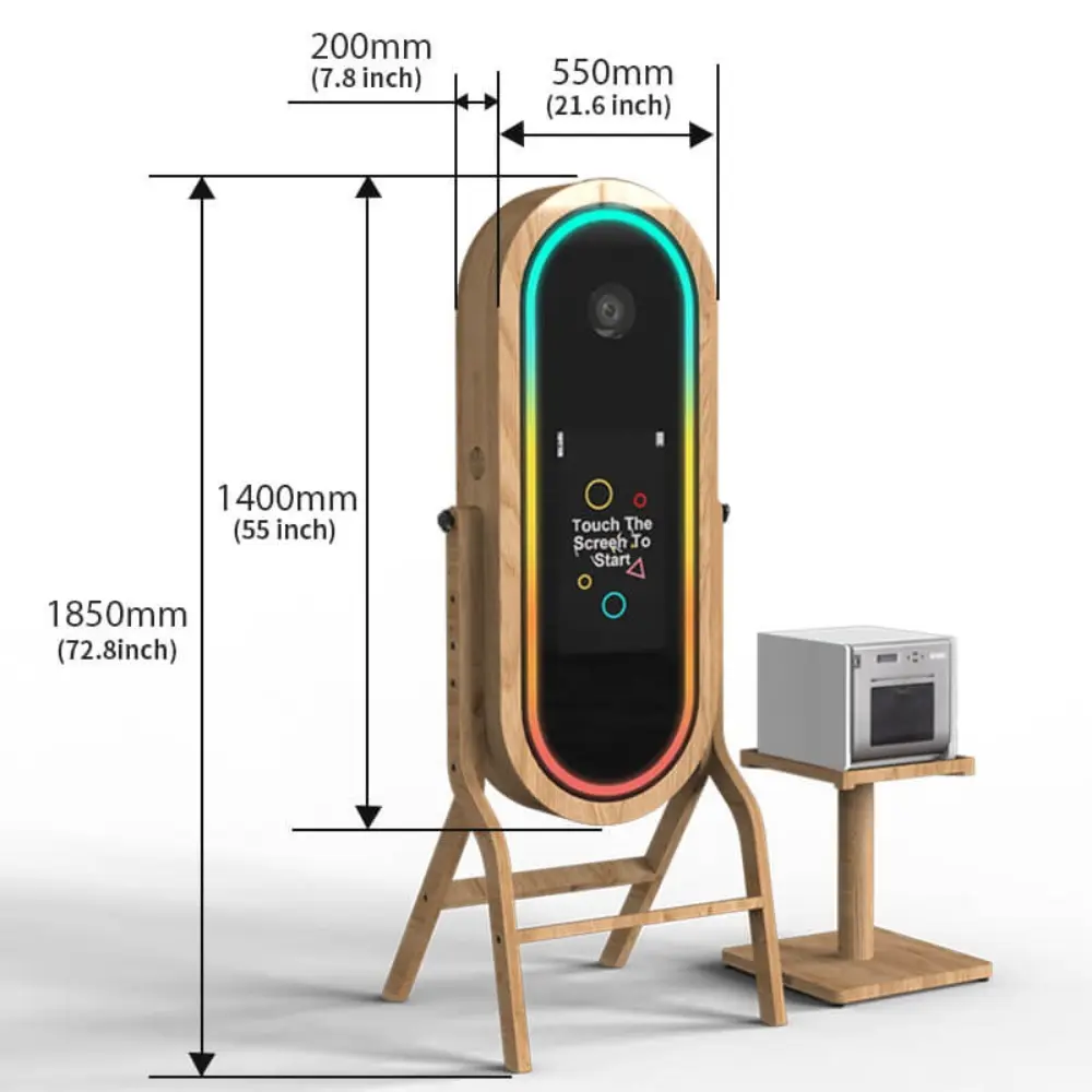 Photomaton Interactif Rétro avec Miroir et Cadre en Chêne – Specifications: