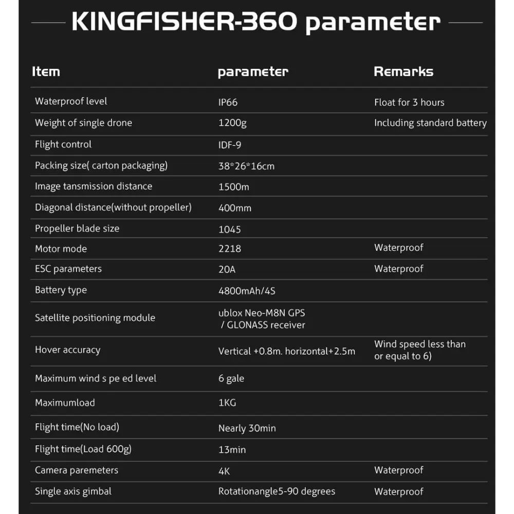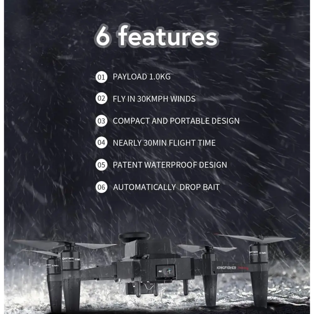 Kingfisher Drone de Pêche avec Caméra 4K et Appâts de 1 kg – Specifications
