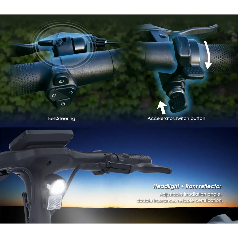 - Guidon : Poignée ergonomique avec accélérateur et bouton multifonction