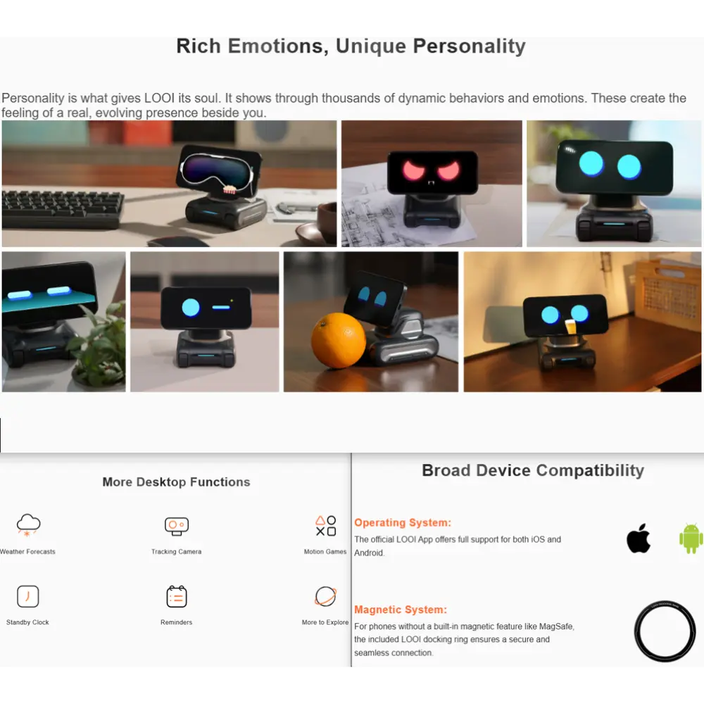 LOOI Robot IA – Compagnon de Bureau Connecté au Smartphone – Specifications: