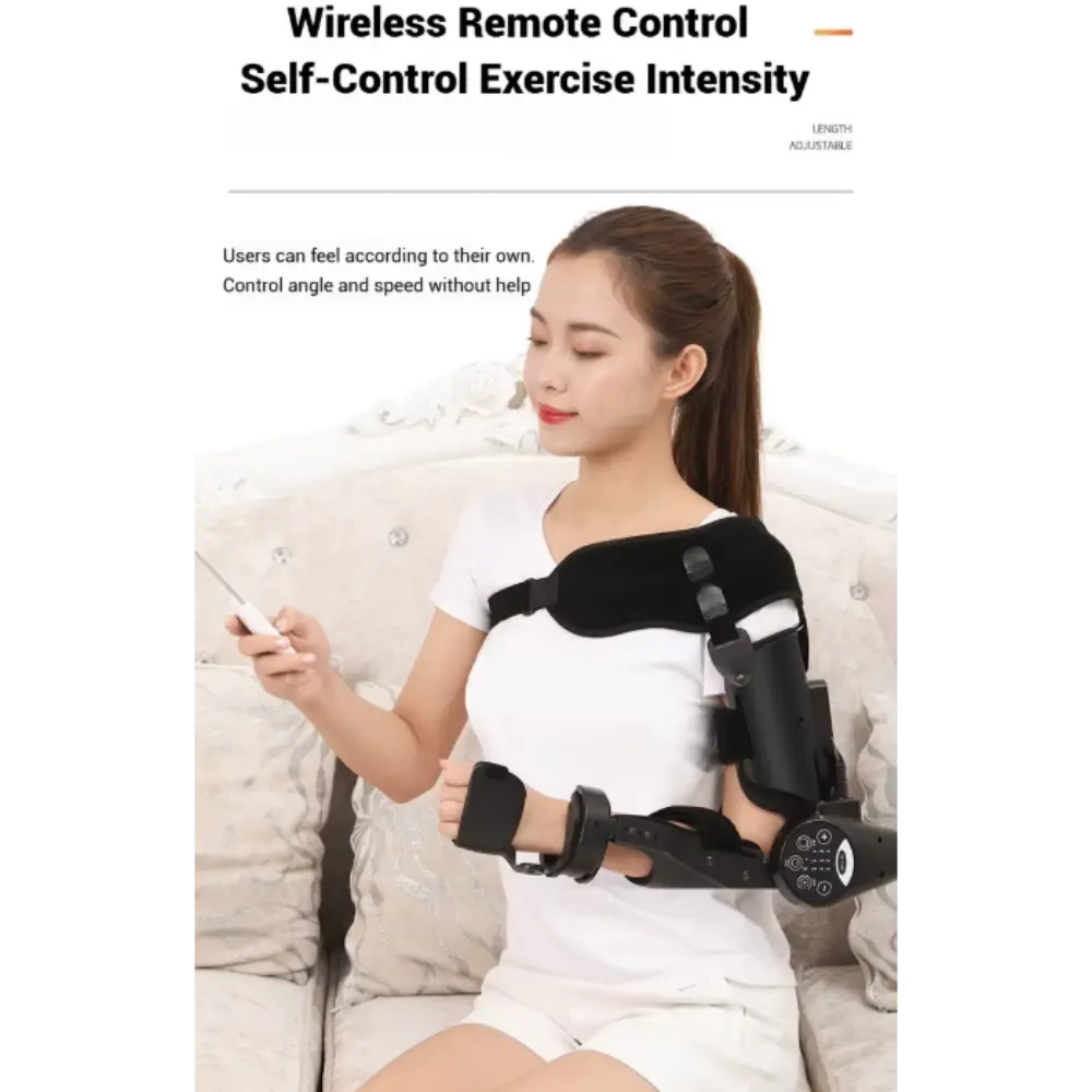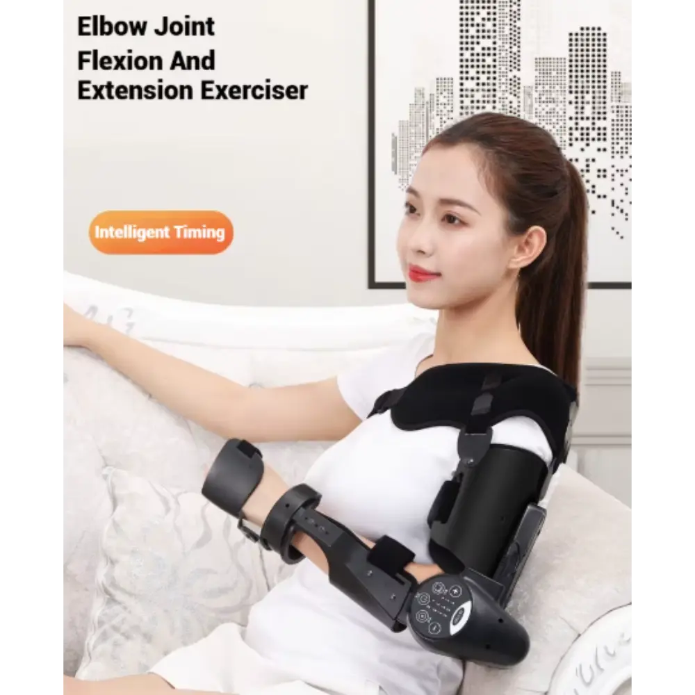 L’ Appareil Robotisé de Rééducation du Coude est un appareil de rééducation spécialisé conçu pour accompagner les personnes se remettant de blessures au bras, d’opérations chirurgicales ou d’affections affectant la mobilité du coude. Conçu pour un usage domestique, cet appareil électrique facilite les mouvements contrôlés de flexion et d’extension du coude, ce qui le rend idéal pour les patients souffrant d’entorses, de raideurs postopératoires ou d’amplitude de mouvement limitée. Son mécanisme motorisé permet de plier et de tendre progressivement le bras, favorisant ainsi l’activation musculaire et la souplesse articulaire sans effort excessif. L’appareil est doté de réglages de vitesse et d’angle réglables, permettant des séances de thérapie personnalisées, adaptées au stade de récupération de l’utilisateur. Sa conception ergonomique assure un confort d’utilisation optimal, tandis que ses commandes intuitives le rendent accessible même aux personnes âgées ou à la dextérité réduite Simulant des mouvements passifs et actifs, il contribue à la réalisation d’objectifs de kinésithérapie tels que la réduction de la douleur, l’amélioration de la circulation et la restauration de la mobilité fonctionnelle du bras. Compact et portable, c’est une solution pratique pour une rééducation continue à domicile.