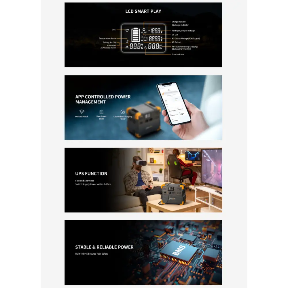 • Caractéristiques supplémentaires : Portable, charge rapide, grande capacité, longue durée de vie, sécurité, contrôle intelligent, onduleur