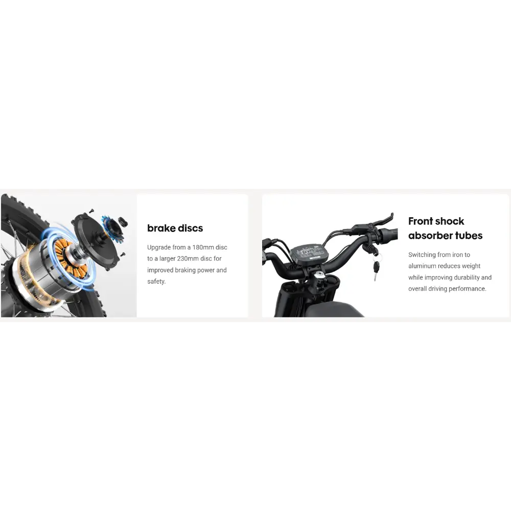 - Freins : Freins à disque hydrauliques avant et arrière avec assistance électronique au freinage