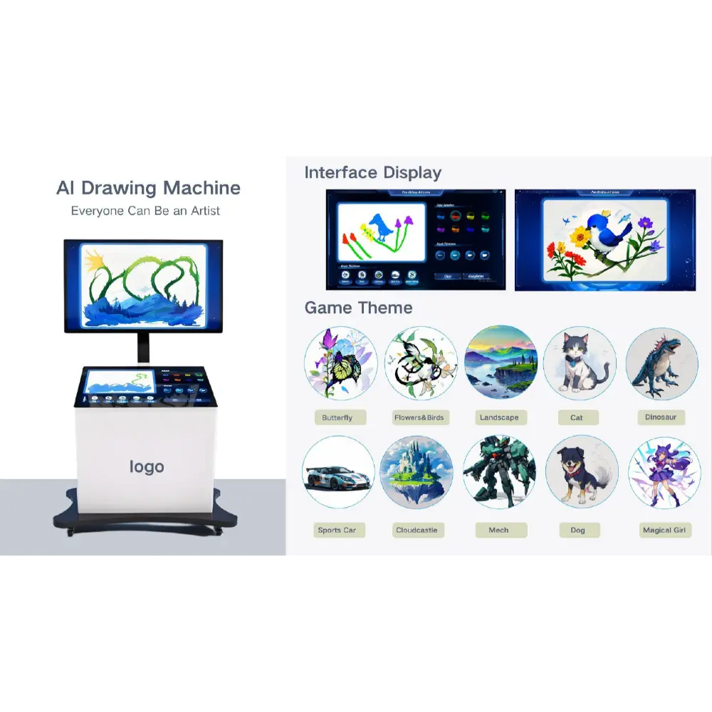 Le Système de Dessin Interactif à Intelligence Artificielle est un appareil innovant qui permet à chacun de devenir artiste en utilisant l’intelligence artificielle pour créer de superbes œuvres numériques. Avec son élégant boîtier métallique et son interface multilingue, cet appareil offre une expérience intuitive et interactive pour tous les niveaux. Il est doté d’un grand écran de 43 pouces et d’un écran tactile capacitif de 32 pouces, permettant une interaction et une personnalisation fluides. Les utilisateurs peuvent choisir parmi une variété d’épaisseurs de pinceau et de couleurs pour créer des peintures numériques uniques. Son Logiciel de Génération de Dessins par IA propose une gamme de thèmes, notamment des papillons, des paysages, des filles magiques et même des motifs complexes comme des voitures de sport et des robots. Que ce soit dans les écoles, les parcs pour enfants, les musées scientifiques ou tout autre espace interactif, cet appareil encourage la créativité et l’exploration. Alimenté par une double tension (110 V/220 V) et un système de 800 W, il garantit fiabilité et qualité d’image. Le Système de Dessin Interactif à Intelligence Artificielle est une véritable fusion de la technologie et de l’art, rendant l’expression artistique plus accessible et plus attrayante.