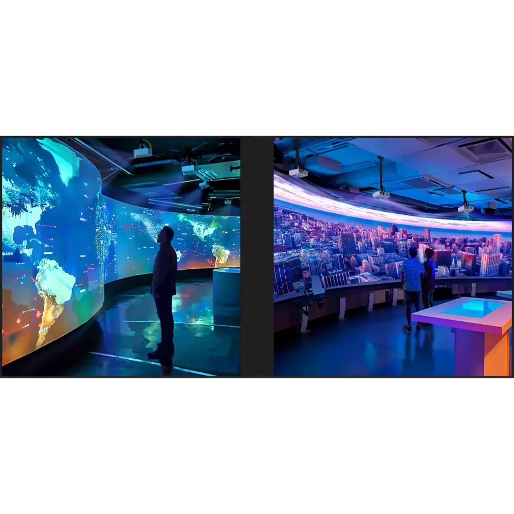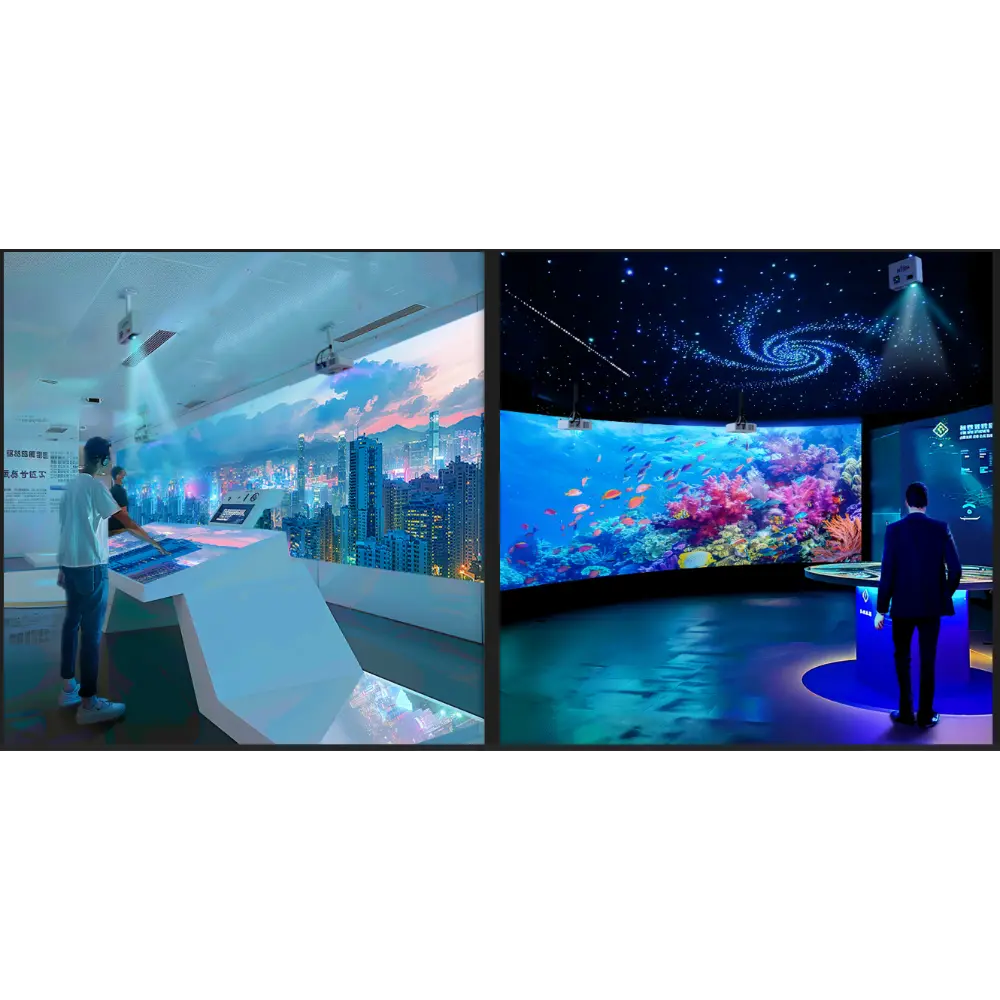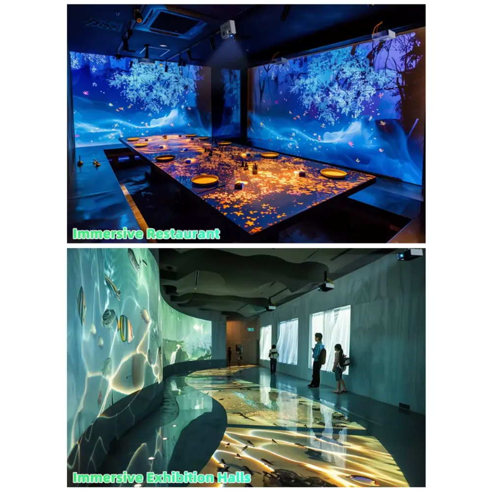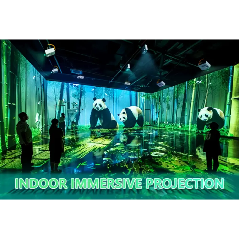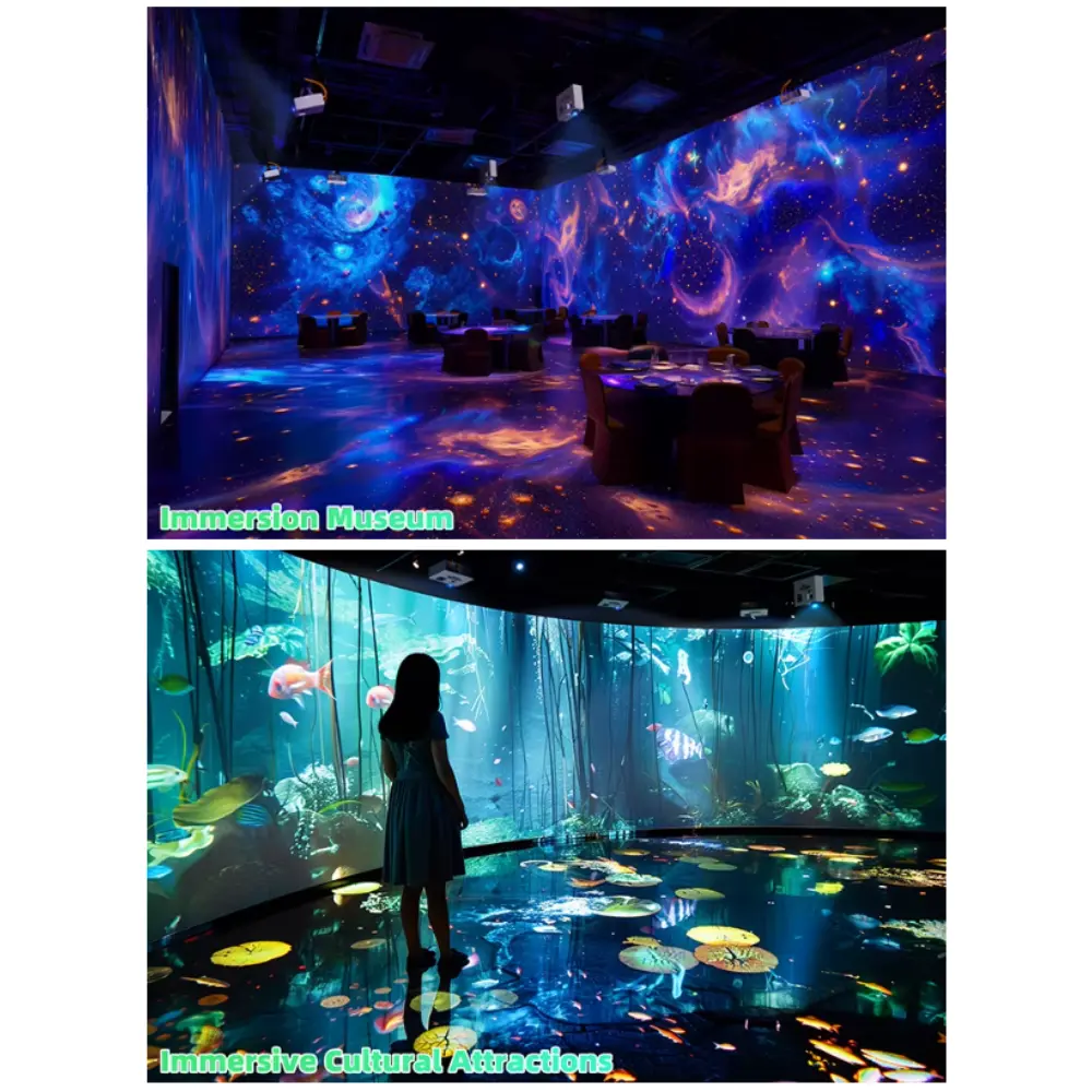 Ce Système de Projection Immersive Haute Définition transforme les espaces clos en environnements dynamiques et interactifs. Idéal pour les musées, les établissements scolaires, les lieux de divertissement et les expériences de marque, il utilise des projecteurs haute résolution et une lecture multimédia synchronisée pour habiller murs, sols et plafonds d’images à 360°. Compatible avec les plateformes Android et Windows, il offre une intégration de contenu flexible et des fonctionnalités de contrôle à distance. La configuration de projection peut inclure plusieurs thèmes, tels que des scènes sous-marines, des effets de particules artistiques ou des simulations interactives de la nature, permettant aux utilisateurs d’interagir avec l’environnement par le mouvement ou le toucher. Le système comprend un projecteur haute luminosité, un serveur multimédia et le matériel de montage, avec des options d’installation murale, au plafond ou suspendue. Avec une résolution maximale de 3840 × 2160 et la prise en charge de l’interaction gestuelle, il offre une expérience profondément immersive. Cette technologie est particulièrement prisée pour les salles de méditation, les salles de classe et les opérations promotionnelles, où l’impact visuel et l’engagement émotionnel sont essentiels.