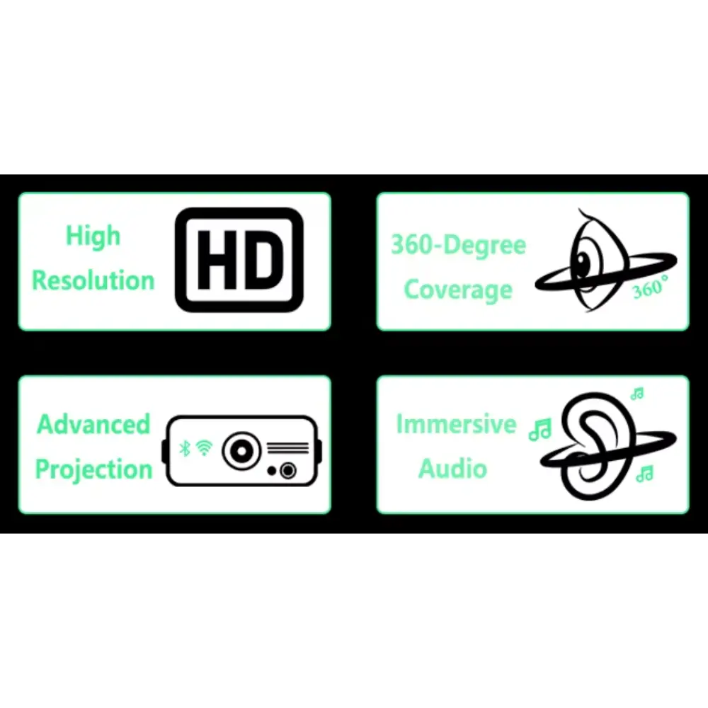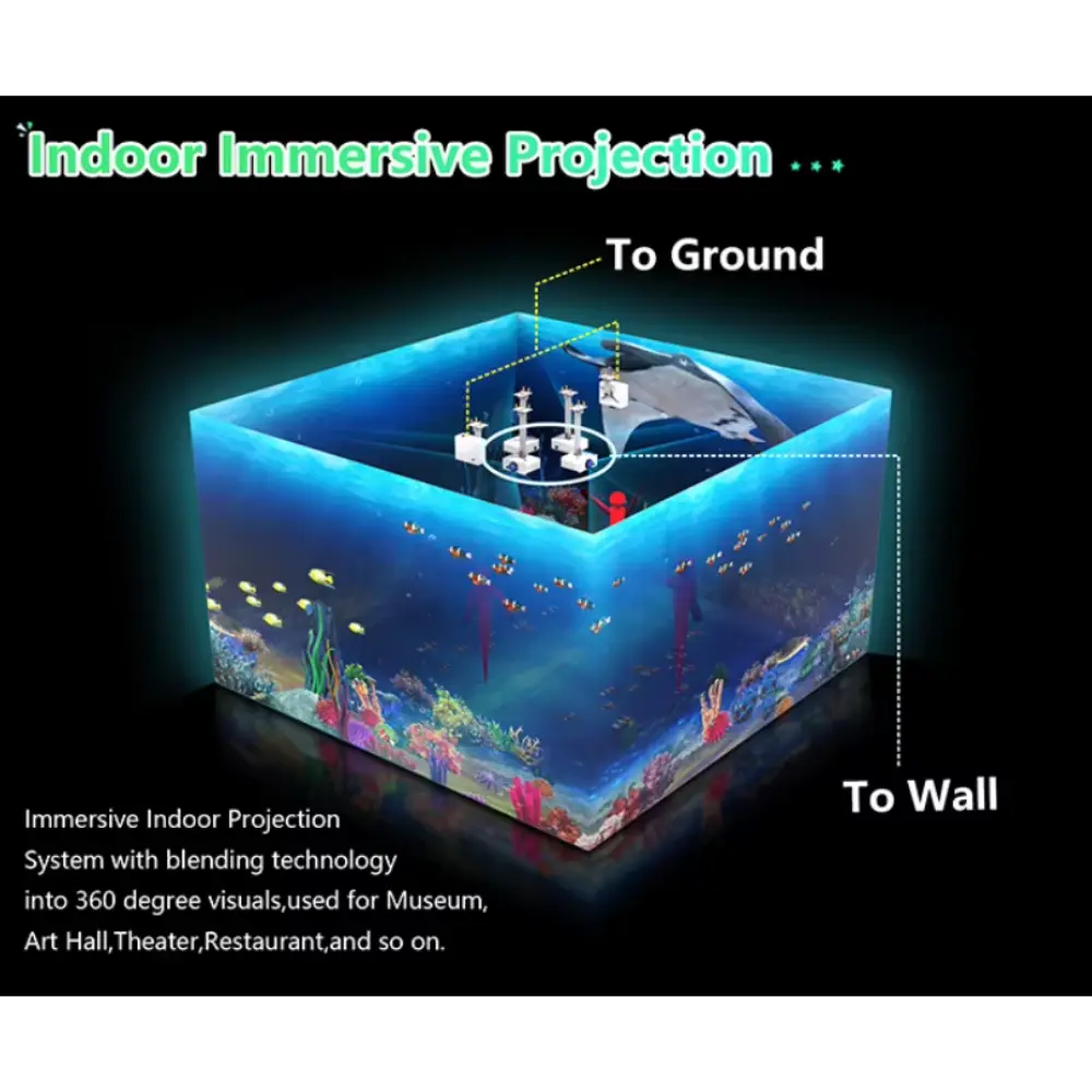 • Projection Type: Full-room coverage (walls, floor, ceiling)