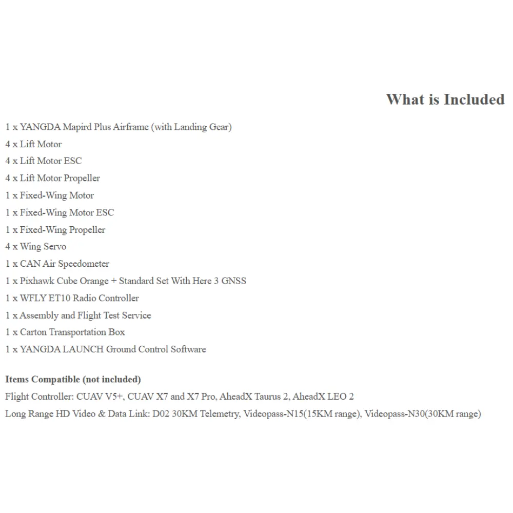 YANGDA Mapird Plus Drone VTOL Longue Autonomie Professionnel – Specifications: